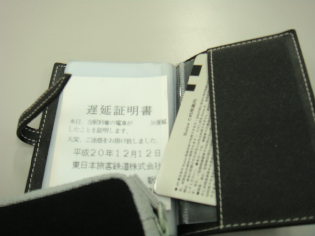 ちなみに左がスイカ、手前がデジカメケース、紙の下に学生証がある。